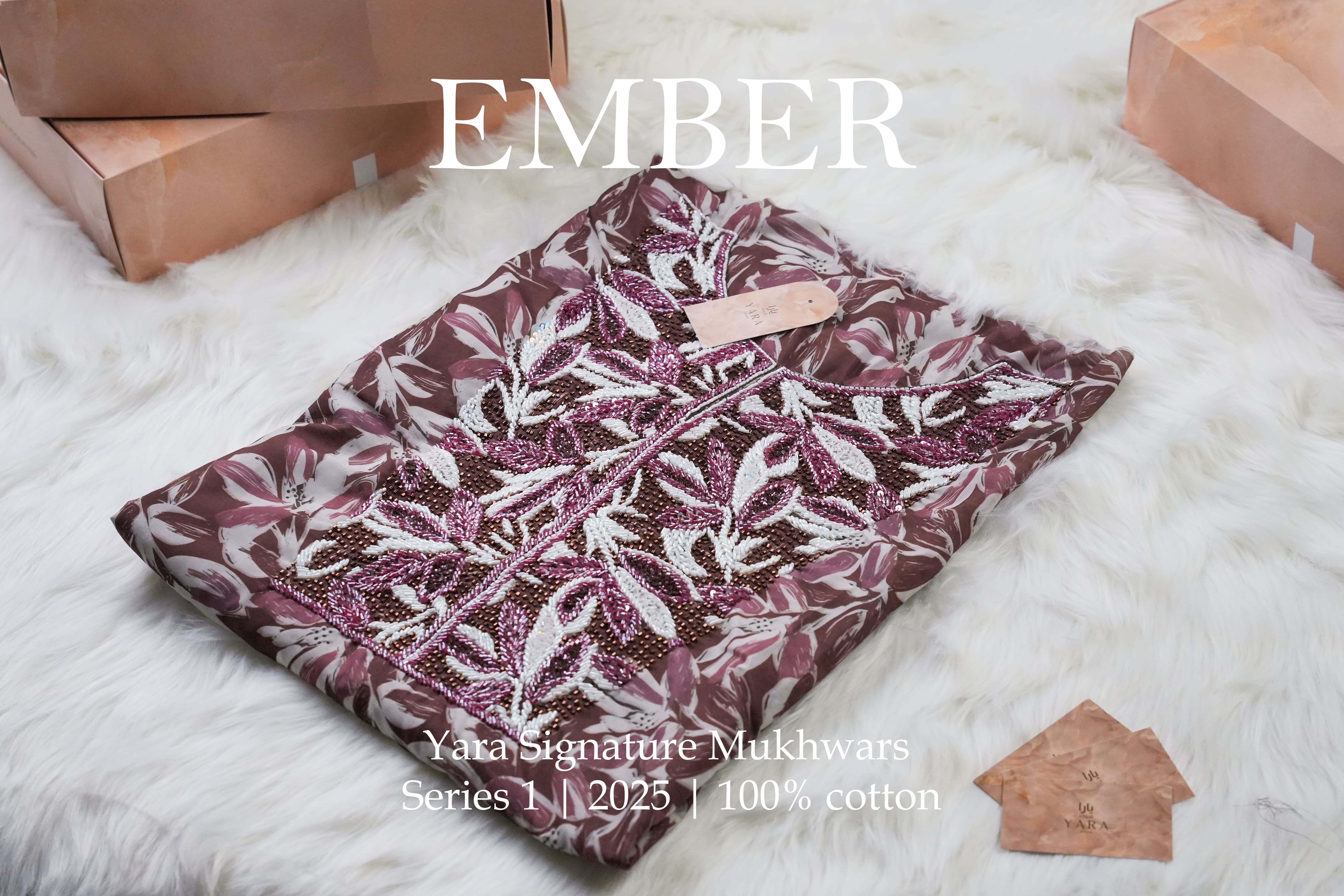 مستوحى من اللون العنابي الغني للعلم القطري، يُعدّ "إمبر" تحيةً للفخر الوطني والأناقة الخالدة. يعكس لونه الغامق، المُرصّع بكريستال أبيض لؤلؤي، قوة وأناقة التراث القطري - جريء، راقي، ومُشرق بالمعنى.
